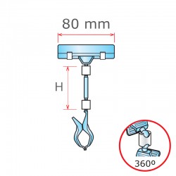 Mola articulada com pinça para aplicar etiquetas, ardósias e placas de preço nos artigos de lojas e estabelecimentos comerciais.