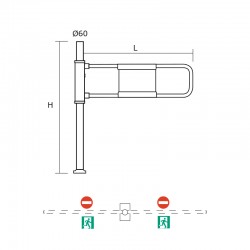 Cancela mecânica com abertura manual por impulso, com placa sinalética "saída de emergência". A força aplicada de abertura é idêntica ao impulso de ativação do sistema anti-pânico. Cancela sem mola: depois de aberta, o braço não volta à posição inicial.