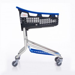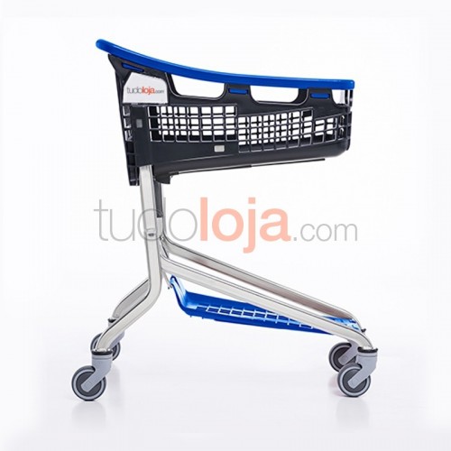 Carro de compras de plástico com capacidade de 75L, perfeito para compras pequenas.