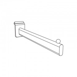 Gancho horizontal com tubo oval e batente, para painéis e expositores multi-sistema.Adequado para exposição e comercialização de artigos em lojas de roupa e desporto.