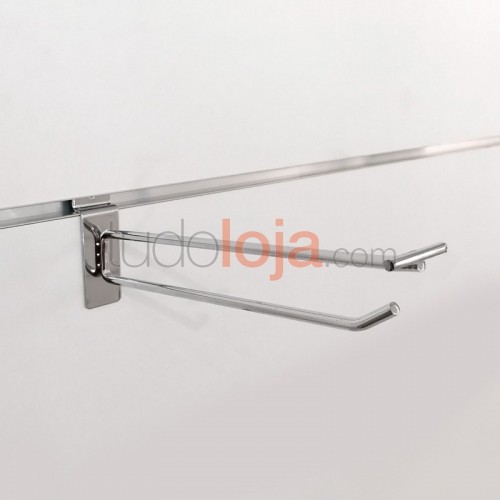 Gancho simples cromado com suporte de etiqueta porta-preço, para painéis e expositores multi-sistema.
