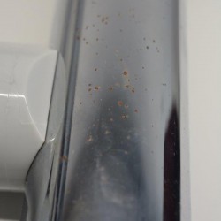 Prumo com pequenos pontos de ferrugem.