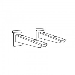 Par de consolas horizontais cromadas com encaixe para painéis e expositores multi-sistema.