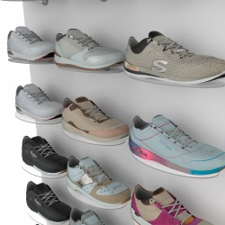 Painel de madeira laminado com 30 prateleiras oval transparente. |
