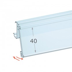 Perfil porta-preço ideal para identificação de produtos e preços em estantes e prateleiras de chapa. Perfil com pinças superiores e inferiores que permitem usar publicidades/destaques complementares.