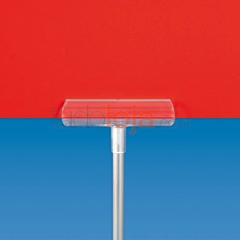 Suporte "T" com pinça adequado para inserir ardósias/displays com espessura de 1 a 5 mm. Compatível com tubos Ø10 mm. |
