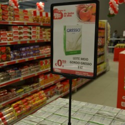 Poster stand (pé de galo) com caixilho para inserir posters, campanhas e folhetos em lojas e supermercados. Kit composto por:
