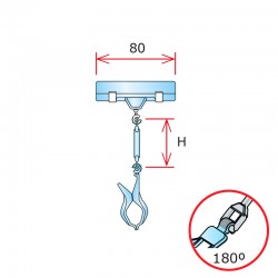 Mola basculante com pinça para aplicar etiquetas, ardósias e placas de preço nos artigos de lojas e estabelecimentos comerciais.