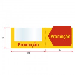 Display stopper com impressão "Promoção" para destacar etiquetas de preço e promoção 40x80. Deve ser inserido no perfil das prateleiras de supermercados e lojas. Espessura do material: 0,5mm |